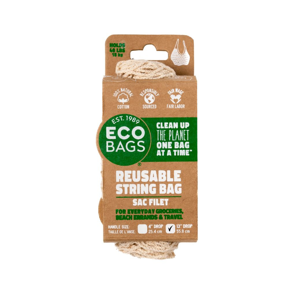 Packaged Natural Cotton String Bag in Natural, Long Handle