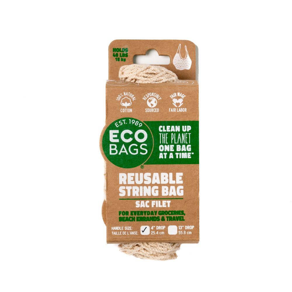Kickstart your sustainable journey with one of the simplest switches ever: A reusable bag! Boasting a durable ‘fishnet’ like construction, the ECOBAGS String Bag stretches and expands to accommodate over 40 pounds of groceries.