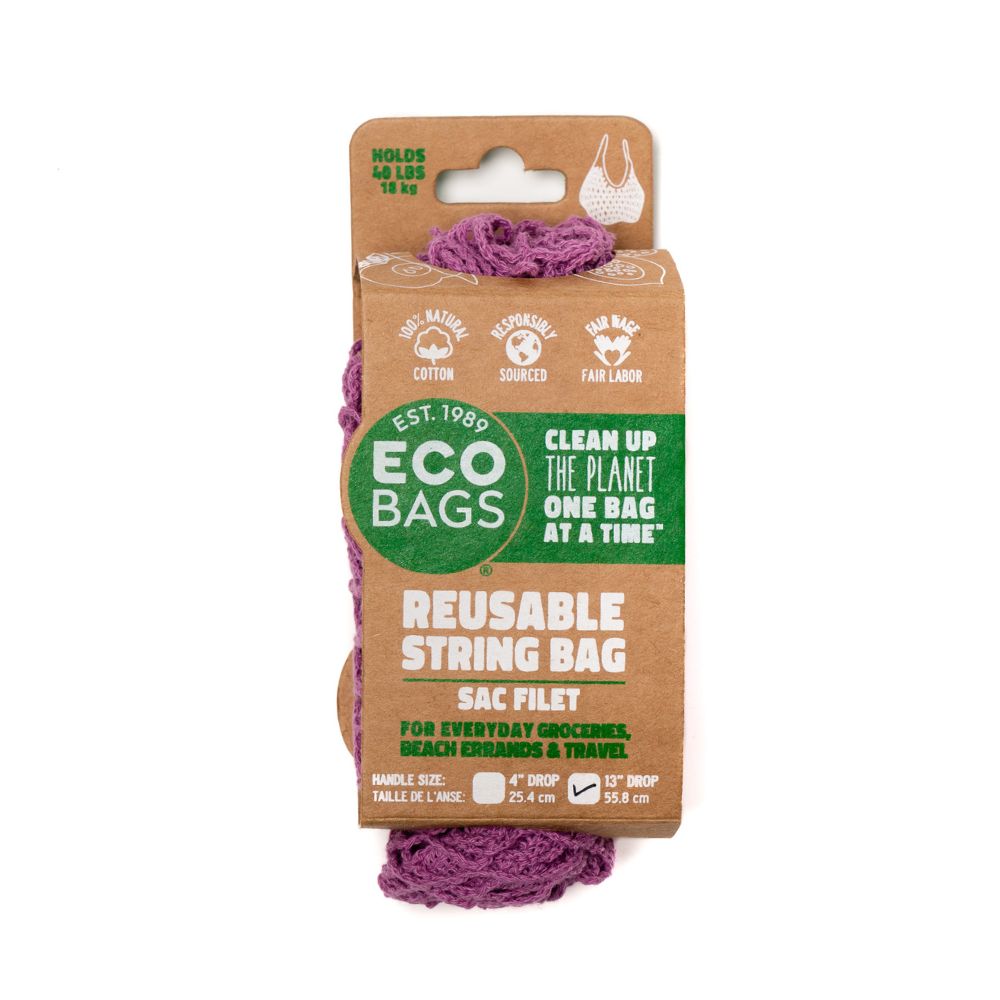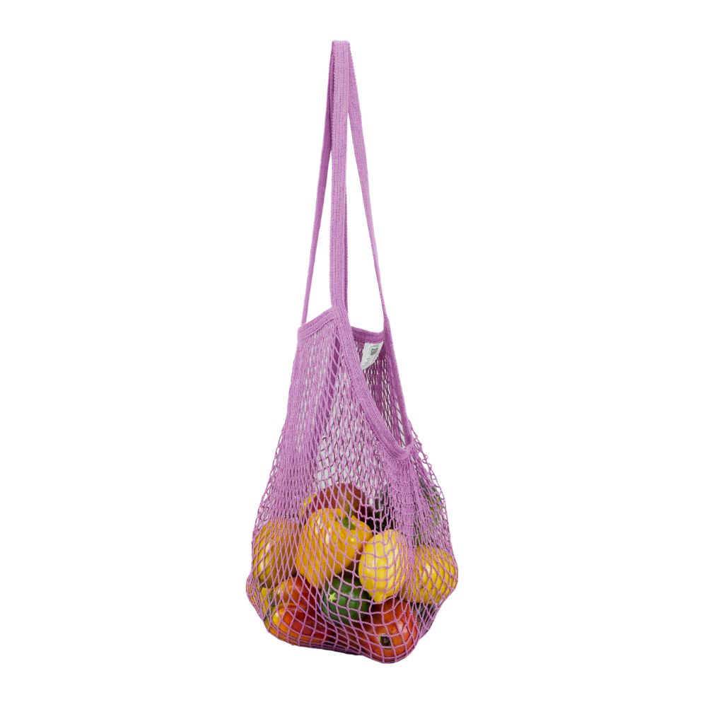 Packaged Natural Cotton String Bag in Raspberry, Long Handle