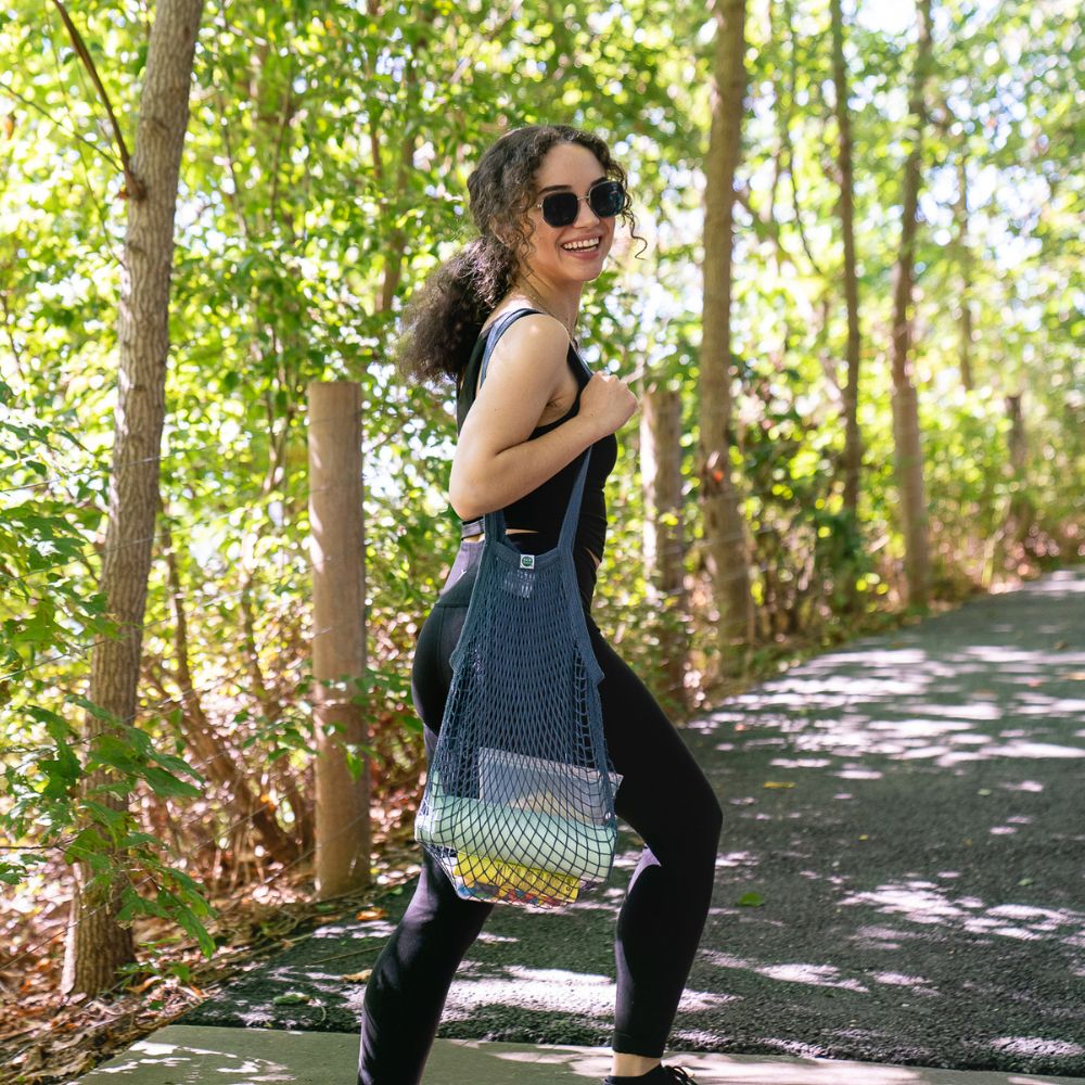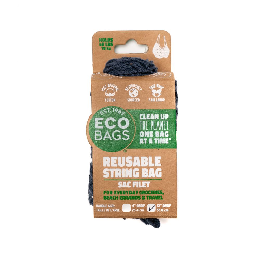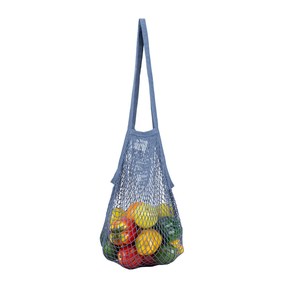 Packaged Natural Cotton String Bag in Storm Blue, Long Handle